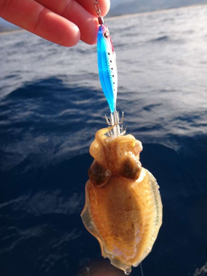 Pour faire les vifs (perso j’adore les calamars) les turluttes Yo-Zuri Ultra bait se sont révélées très efficaces et même dans plus de 45m de fond nous ferons aussi quelques seiches