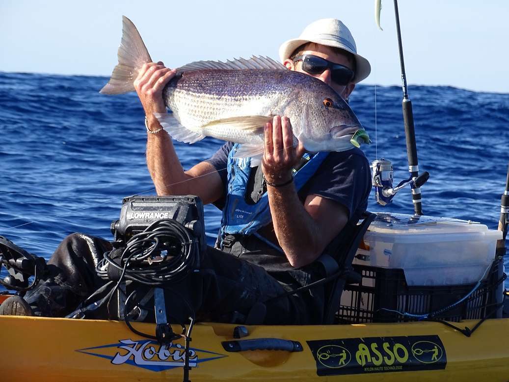 Cette année j’ai changé la tresse 50lbs de mon Seagate pour passer en Yo-zuri Superbraid 8x en 30lbs. J’avais vraiment peur en début de séjour car elle parait très fine mais je n’aurais à déplorer aucune casse. Grâce à sa finesse je peux pêcher avec des jigs de 80gr dans des fonds de 90m et plus, un vrai plaisir car jigger plus lourd ça devient vite un calvaire en kayak !
