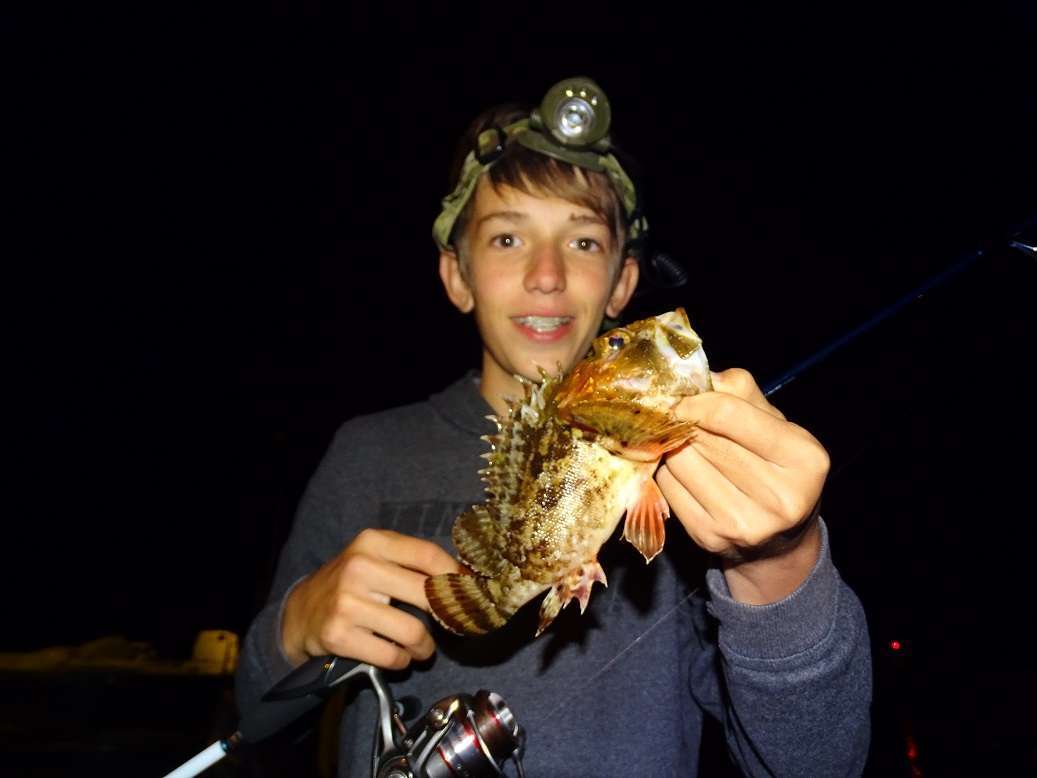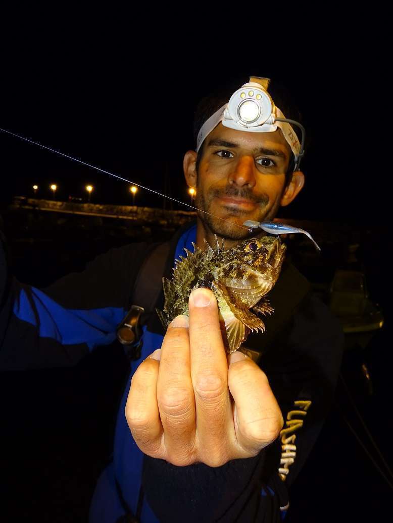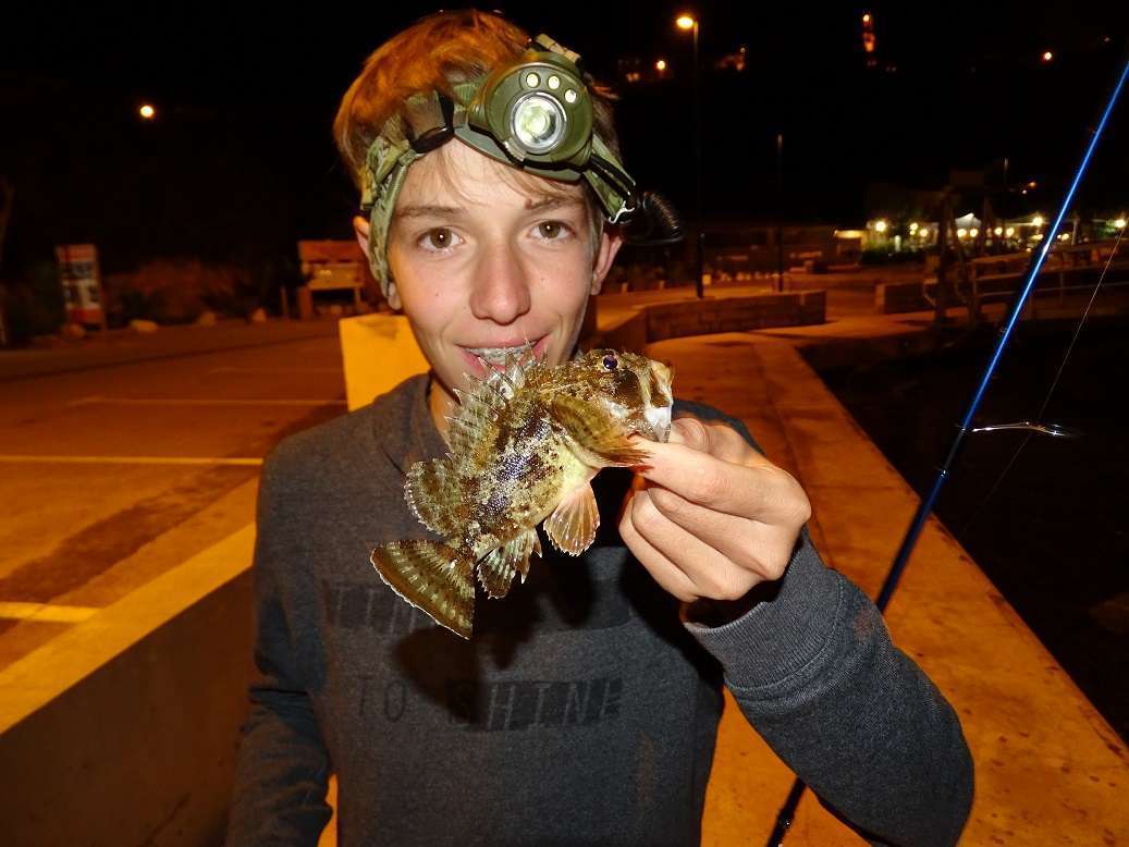 Un soir j’ai amené « Francescu », le fils d’un copain faire un coup de rockfishing. On s’est régalé et il a vite pris le coup pour repérer les yeux des rascasses avec sa lampe.