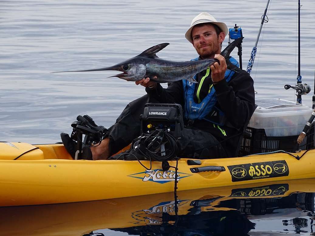 Sur la même canne il aura ensuite la surprise de se faire manger son calamars par….. un espadon !