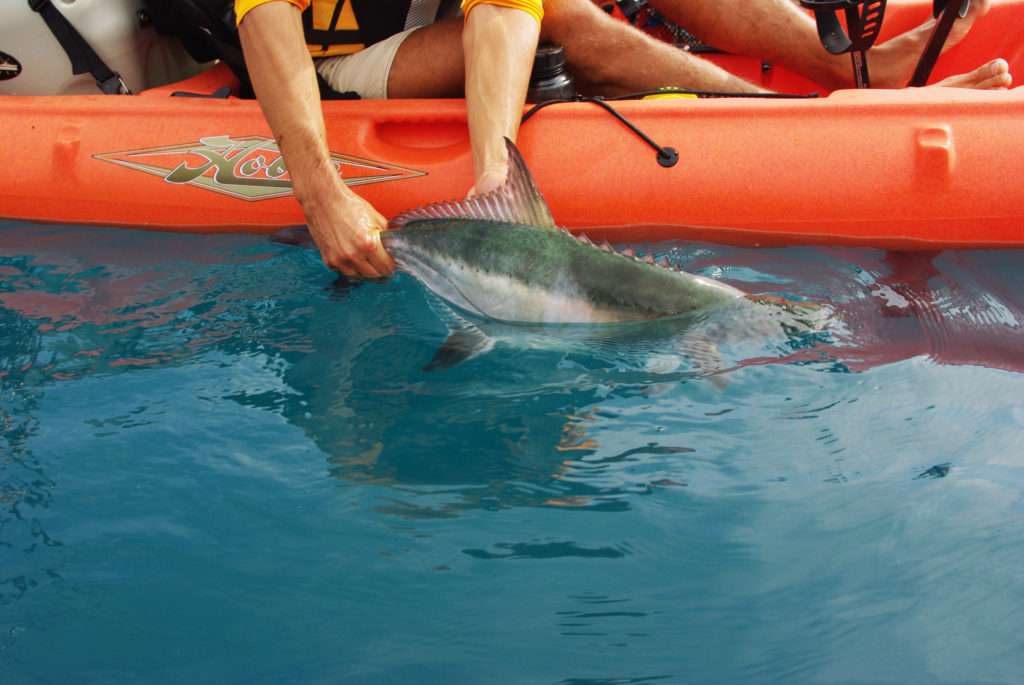 Le pêcheur sportif aura à cœur de libérer ce fantastique prédateur. Ce respect de la ressource permettra de continuer à prendre ce mythique pélagique et de rêver à de nouvelles prises l’hiver venu.