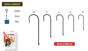 Les hameçons doivent être de petite taille, Un n°4 aberdeen est donc celui qui convient le mieux. Nous vous conseillons par ailleurs l’utilisation des MARUTO 3190, à la fois très piquants et très légers. Pour les inconditionnels de l’emploi de couleur sur les empiles, il est possible d’agrémenter ces dernières par une perle phosphorescente ou alors par l’utilisation de petites perles flottantes.