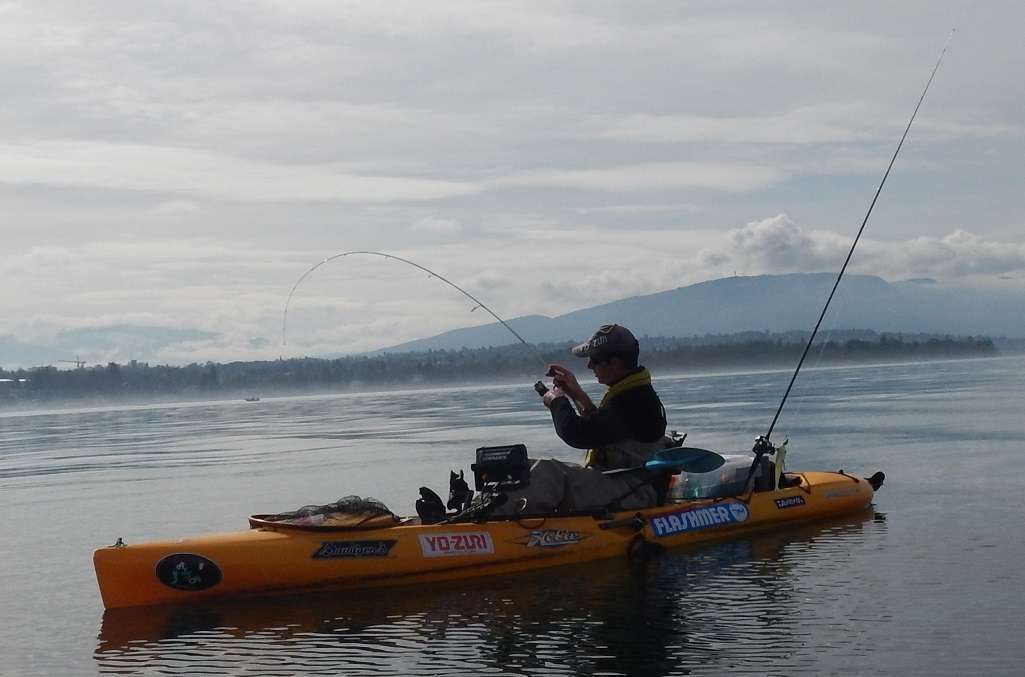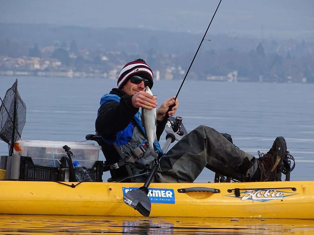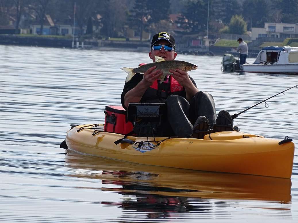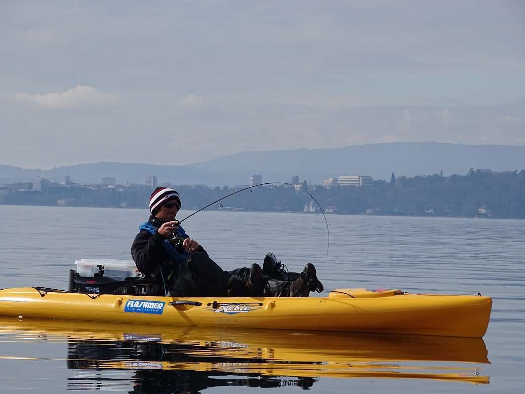 Je prendrai une petite touche puis finalement enfin une bonne tape, le 1er de l’année ! Un poisson dans les 75 cm mais ça fait plaisir car les chercher en mars au Leman demande pas mal de patience ! Pas de photos hélas car les autres étaient trop loin.