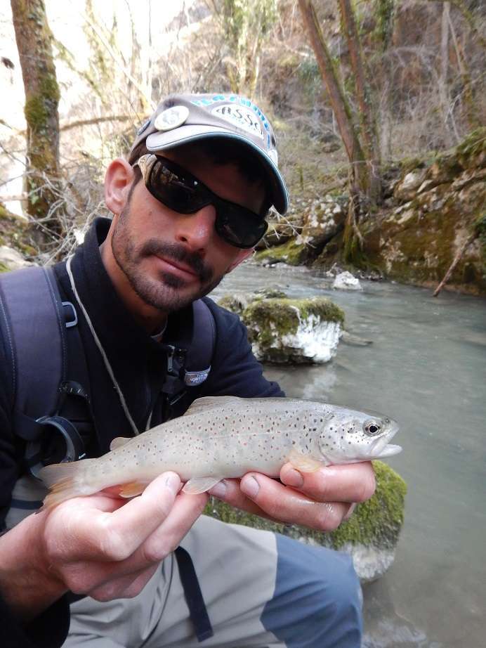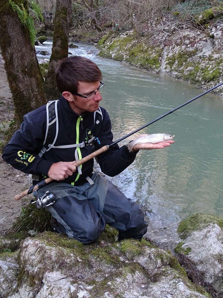 Le mardi nous faisons « notre » ouverture et nous ne verrons personne de la journée ! L’eau est très froide et sale dans la première rivière où nous nous arrêtons. Je prends quand même ma 1ere truite 2017, un joli poisson que je me suis bien amusé à sortir sur mon combo baitfiness spoolé avec du Asso Ultra-stretch en 20/100.