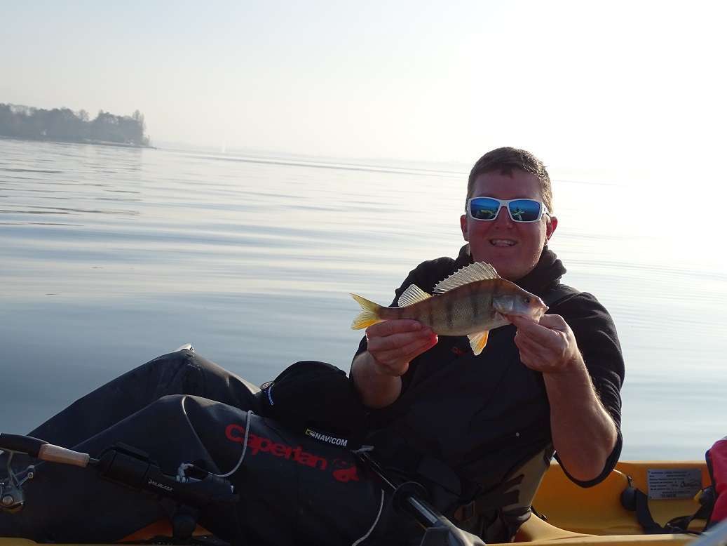 Nous prenons de temps en temps quelques perches car celles-ci sont aussi intéressées par nos gambes.