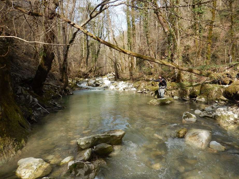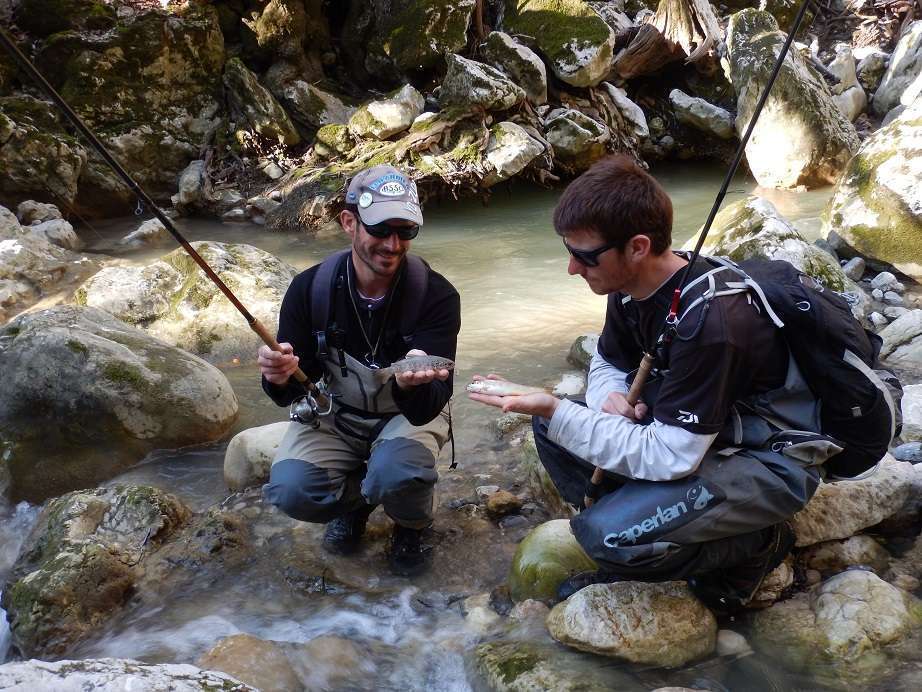 Devant le peu de résultat nous partons pour une rivière plus petite en espérant trouver une eau plus propice à la pêche. Effectivement c’est beaucoup mieux et au toc nous ferons pas mal de truites dans un cadre magnifique, nous croiserons même plusieurs chamois !