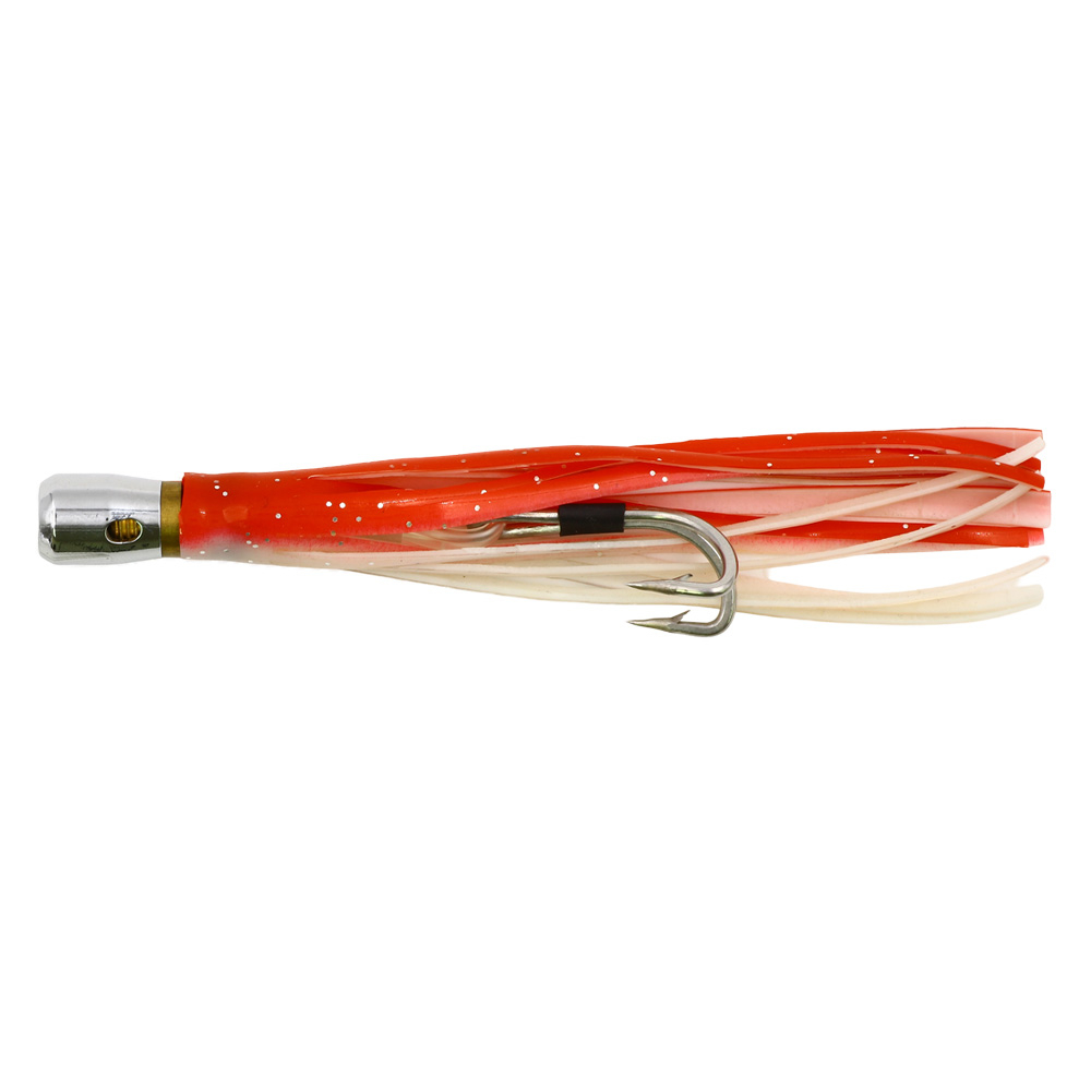 The metal head features holes that create a strong trail of attractive bubbles in the skirt. Ultra-stable even when towed at high speeds, these lures are perfect for fishing all types of tuna in France (bluefin, albacore, etc.) or in exotic waters (e.g., yellowfin).A must-have for large billfish such as marlins (white, blue, striped), sailfish, dolphinfish, wahoo, etc.