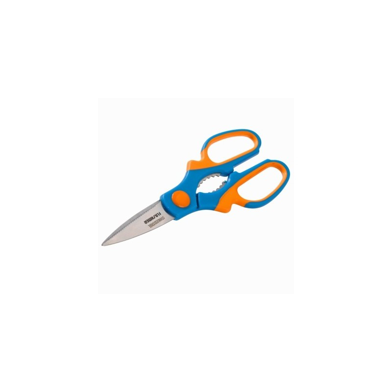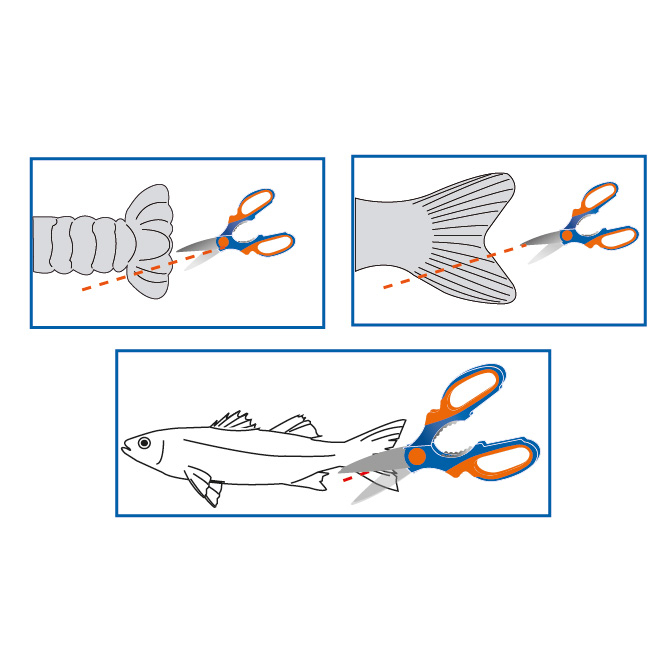 The Tail-Cutting Scissors are ideal for marking fish. Their serrated blades grip the slippery texture of fish fins. The ergonomic handles and large rings provide a secure grip. The serrated stainless steel interior of the handles allows for various uses: opening glue bottles, bottle opener, nutcracker, holding an object firmly, etc.