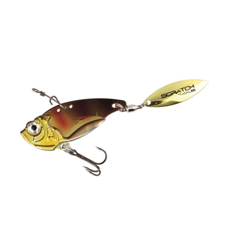 By combining the strong lateral vibrations of the body with those produced by the blade, this lure creates a dual stimulus and is easily spotted from a distance.