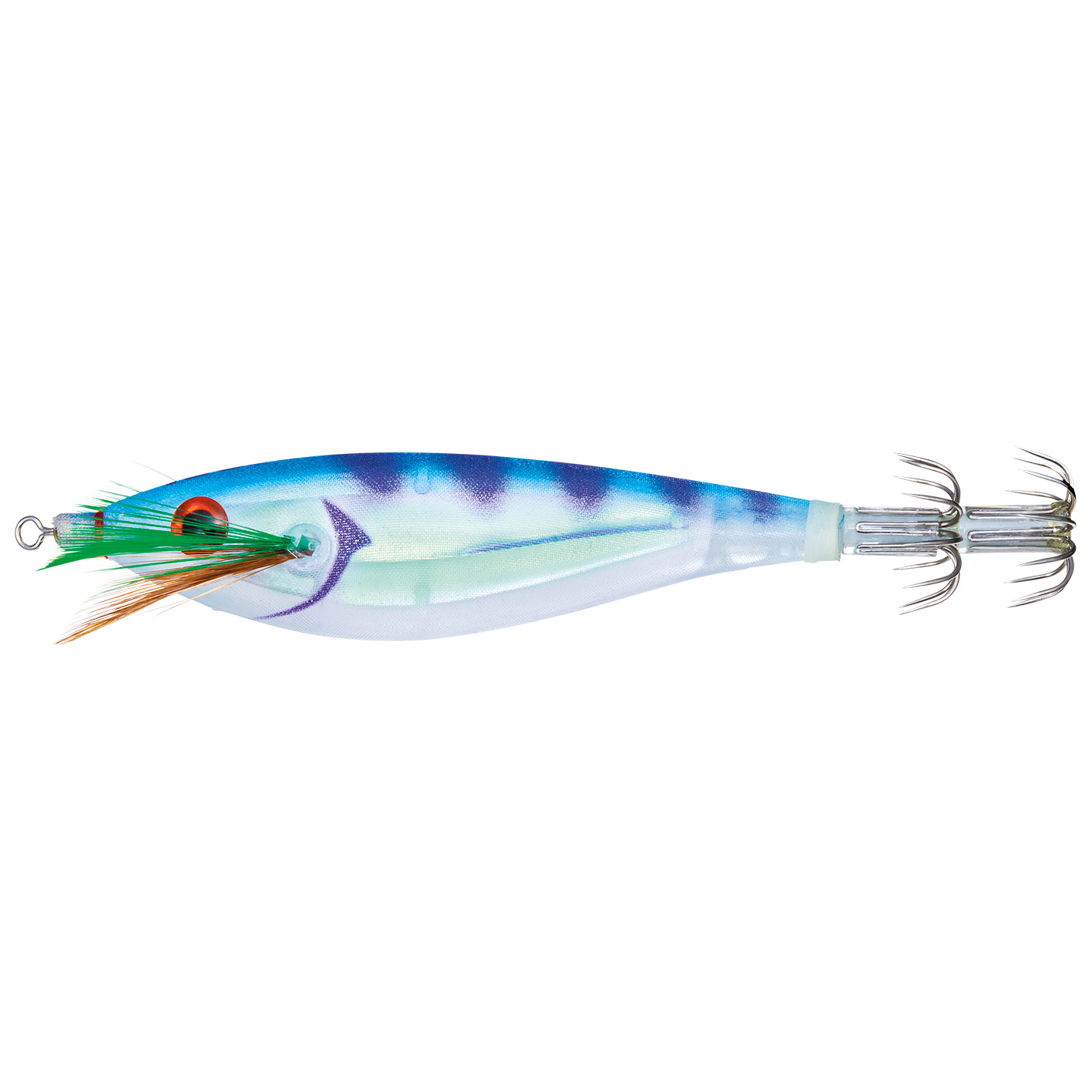 buoyancy and horizontal position: With perfect balance and slow buoyancy, these jigs stay perfectly suspended horizontally even in currents. They slowly return to this position after being worked—making them super attractive to cephalopods!