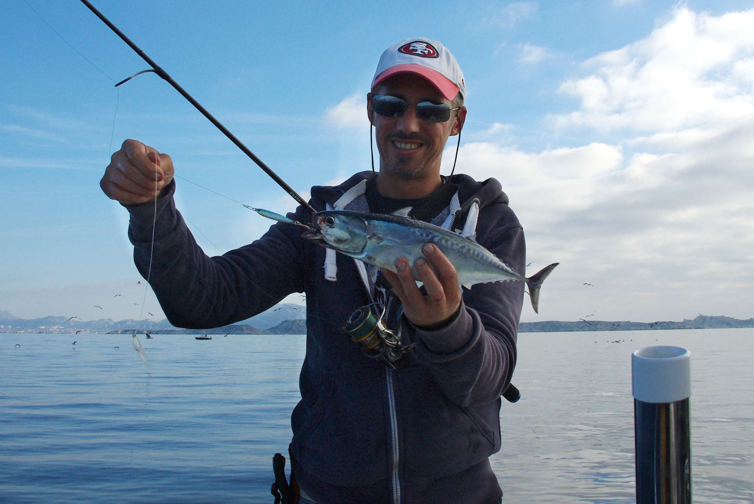 Alors que nous nous approchons du port, des attroupements d’oiseaux éveillent notre attention. Alors que nous arrivons à proximité, nous tentons de définir la nature de ces chasses. Avec la présence importante des thons, il s’agit de ne pas lancer au moindre signe d’activité quand on pêche en 15 lb. De quoi vous vider le moulinet en moins de 30 secondes !