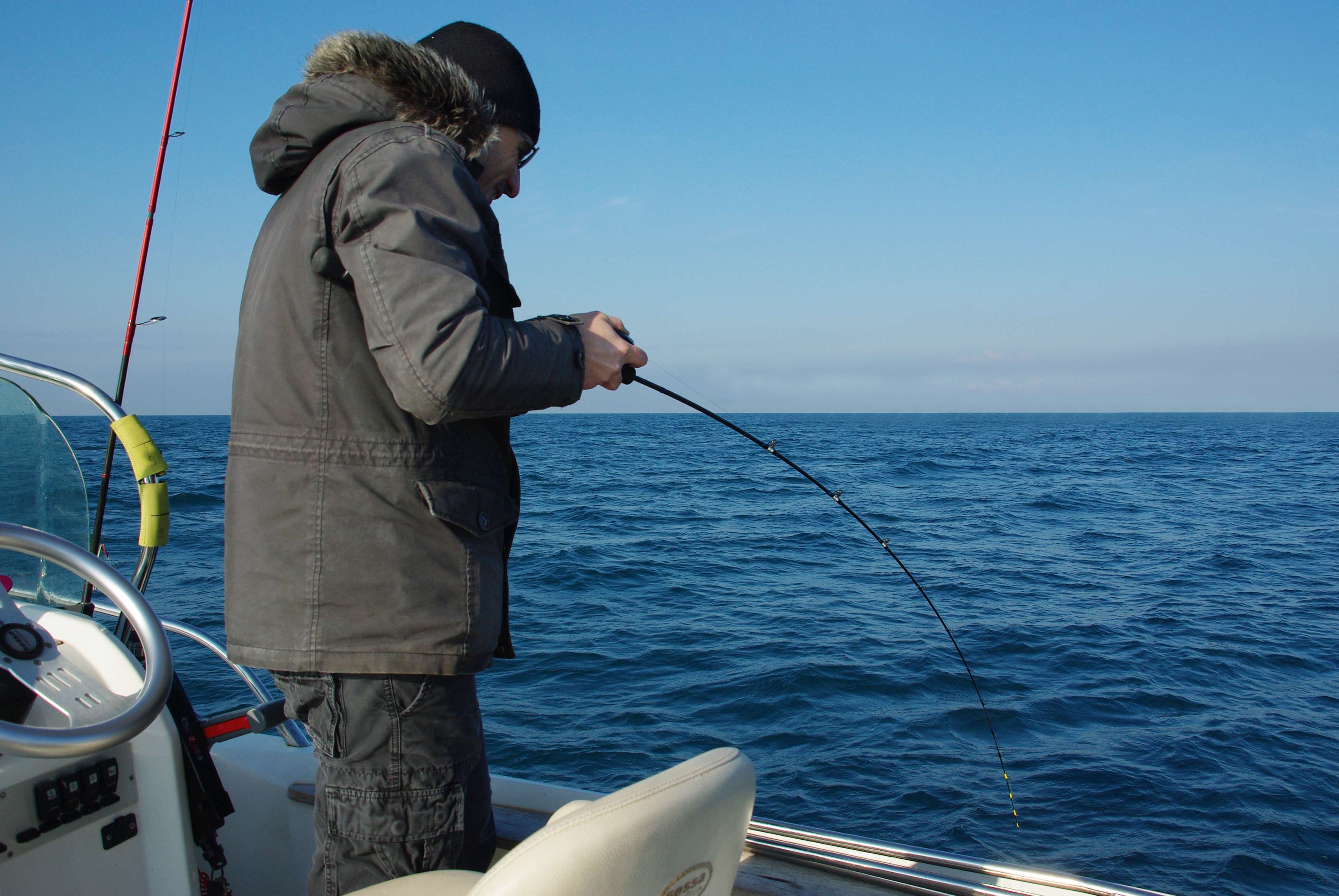 Les poissons n’étant pas encore revenus en nombre, nous avons dû explorer différentes zones avant de trouver du poisson. Dés le premier pageot, nous avons enregistré le point car nous savons que cette espèce évolue en banc. Et effectivement, à chaque dérive, les touches se succédaient dés que nous arrivions sur zone. Un simple creux d’une dizaine de mètres de long avait concentré de nombreux sparidés. En passant sur le spot, il était nécessaire de libérer du fil pour que le montage arrive dans le trou. Et à ce jeu, le casting nous a offert un avantage indéniable. Avec le pouce sur la bobine, nous pouvions sentir les touches lors de ces relâchers et ferrer aussitôt. Il n’était ainsi pas rare de faire des doublés avec un poisson sur chaque empile. C’est dans ce cas là que notre 30/100 s’est avéré très utile pour éviter les casses. D’autant que le montage étant en fluorocarbone, il restait suffisamment discret, – ce qui est important quand on connait la méfiance des sparidés.
