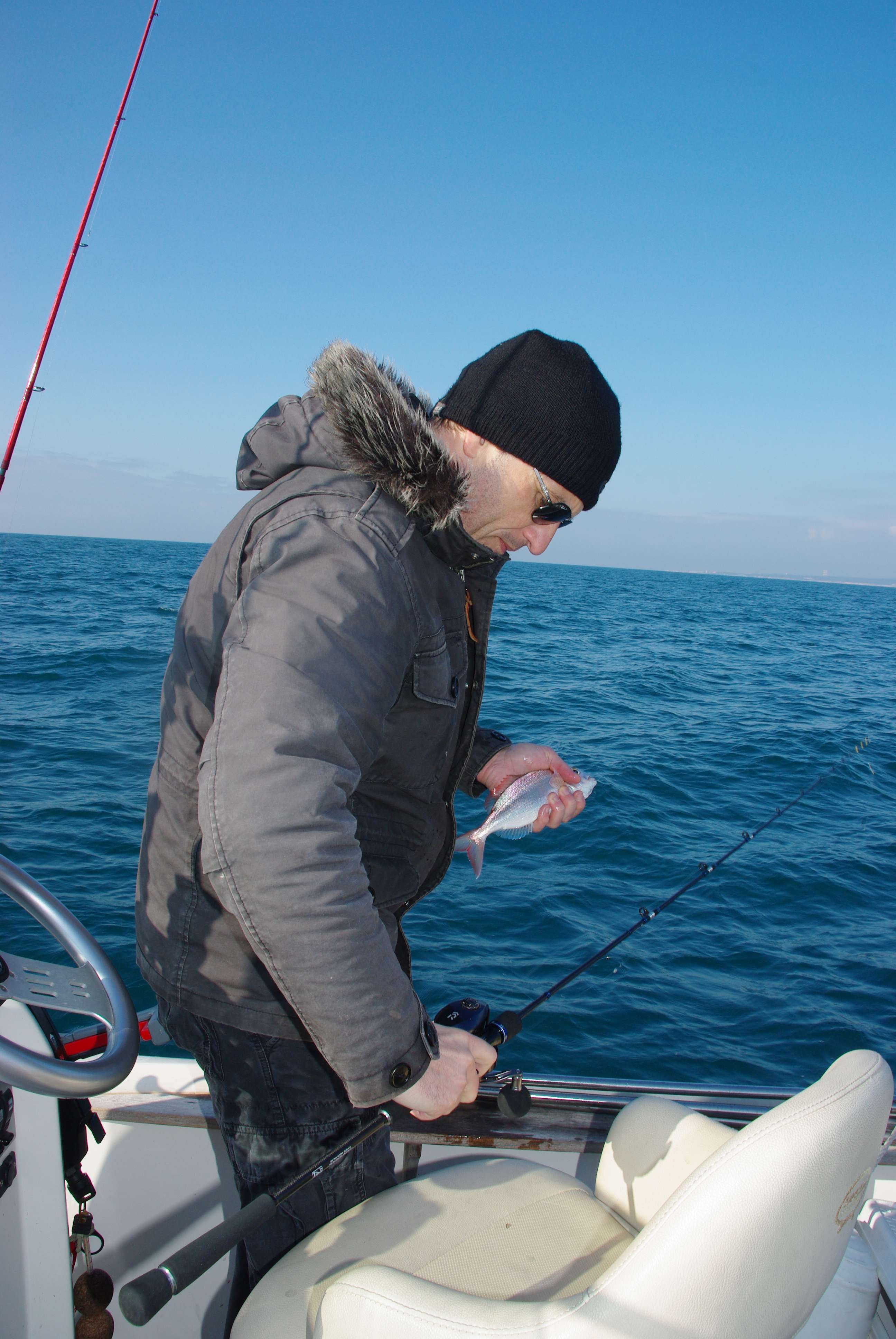 En début de saison, les eaux sont encore froides et les sparidés ne sont pas encore revenus à la cote. Il est donc nécessaire d’aller les rechercher assez profondément. Les poissons visés seront aujourd’hui les pageots, – une espèce très combative pouvant atteindre prés de trois kilos. Nous avons choisi le montage Daurade Royale Atlantic car bien qu’il soit idéal pour la « belle aux sourcil d’or », il est en fait parfaitement adapté à tous les types de sparidés.