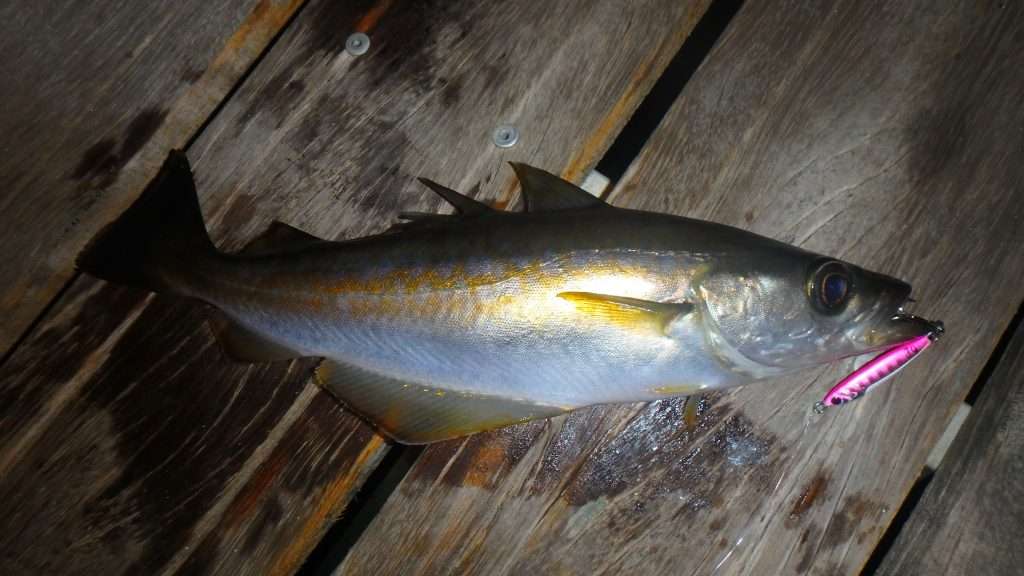 Pour certaines espèces, le Métal Spot peut se montrer largement supérieur aux petits leurres souples. Ainsi, lors d’une soirée rockfishing, j’ai réussi à toucher plus d’une cinquantaine de poissons dont quelques bars au dessus de la moyenne. Pour les chinchards et les bars la meilleure animation a été le linéaire avec quelques twichs légers. Concernant les lieus, ces derniers répondaient mieux à une animation de type traction avec des descentes en feuille morte fil tendu pour ressentir les touches.