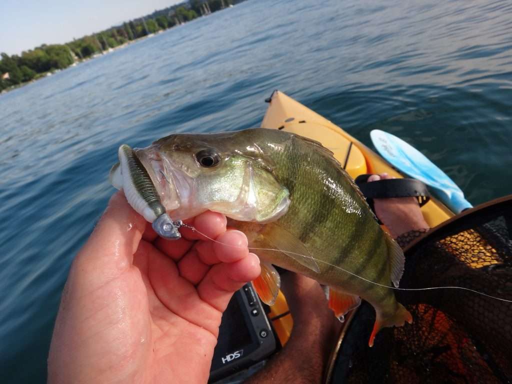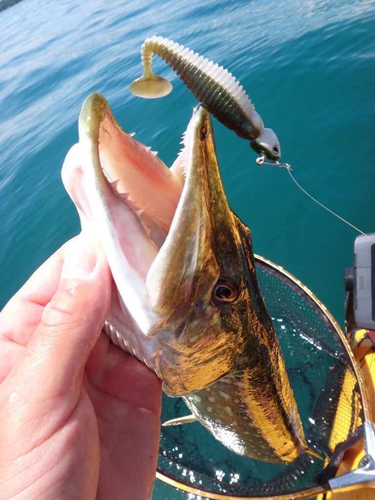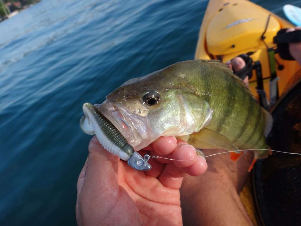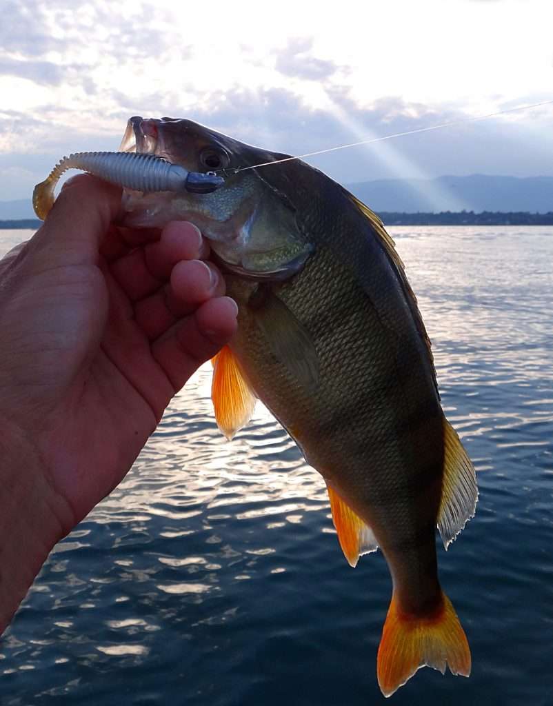 Le Grusbster est vraiment un super leurre à perche ! Le 7 cm est parfait pour les plus belles zébrées et il m’a permis de toucher de beaux spécimens. Sur le lac Léman, j’ai même fait des cessions à plus de 70 perches en 2 heures avec ce shad comme vous le verrez dans la vidéo ci-dessous. Pour cette espèce, j’utilise une bourriche pour pouvoir les relâcher après. En effet, libérer une perche stoppe la frénésie du banc. En les conservant dans une bourriche, il est ainsi possible de multiplier les prises.