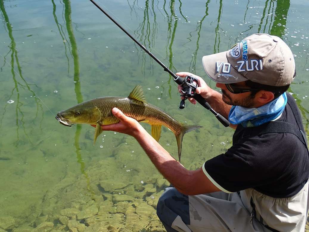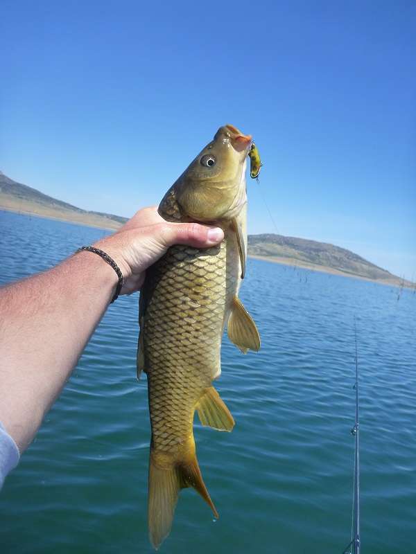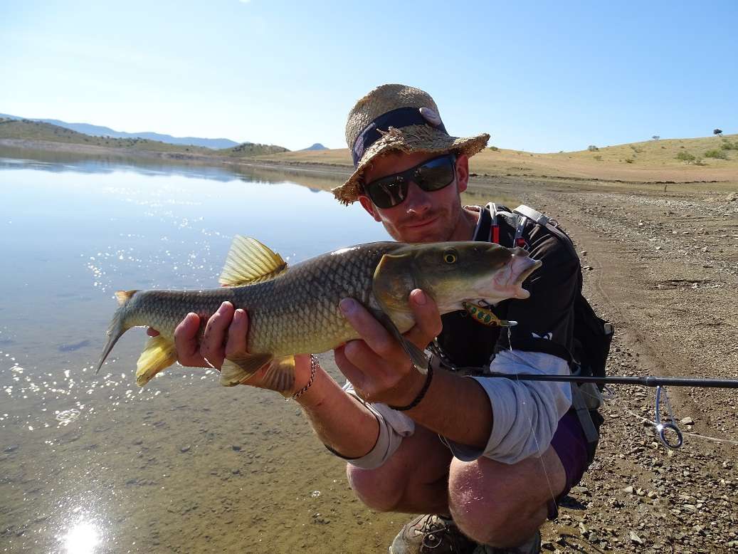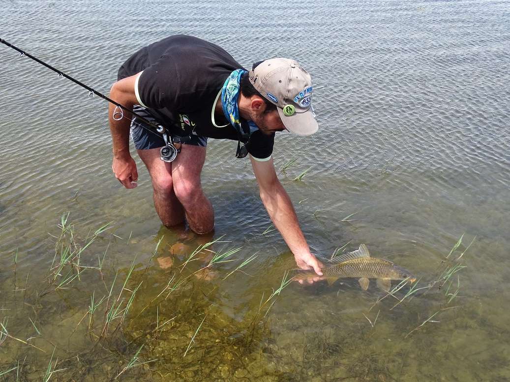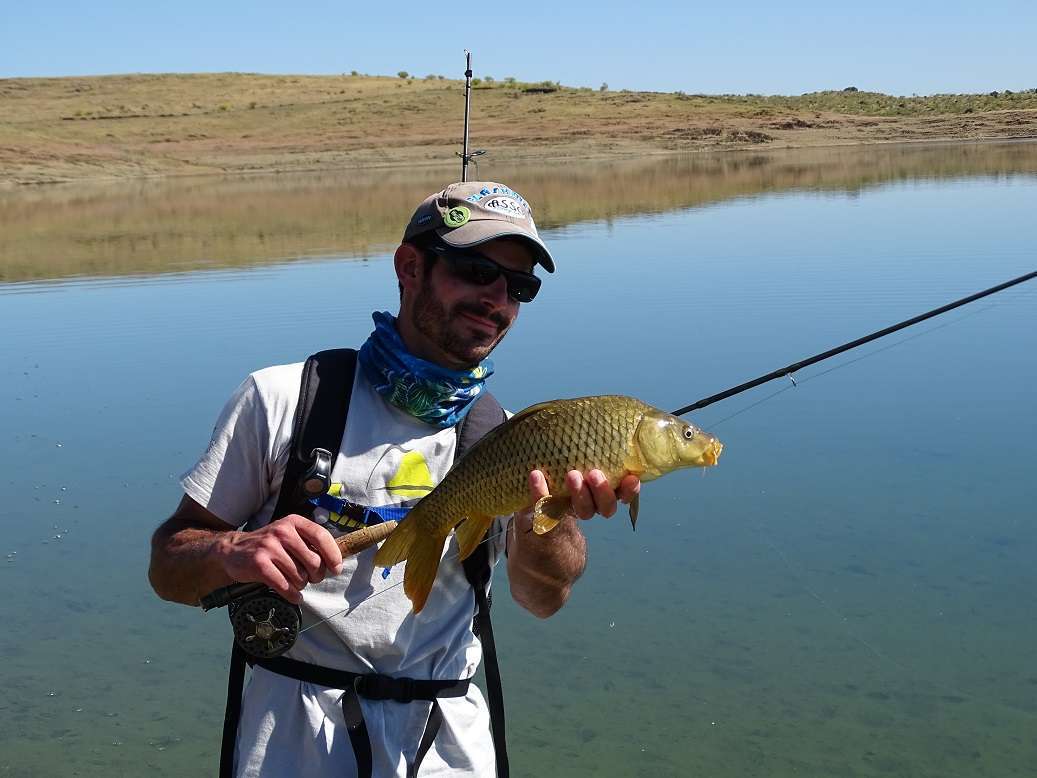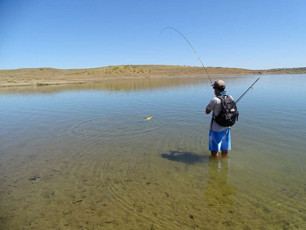 Nous profiterons de ce manque d’activité des bass pour découvrir de nouveaux coins et passer du temps à chercher un des poissons qui a motivé notre voyage, le barbeau. En fait on devrait d’ailleurs plutôt dire LES barbeaux car nous prendrons au moins 2 espèces différentes (et 1 hybride): le comizo et le short-head. Le lac de La Serena est notre préféré pour les traquer. L’eau y est très claire et il possède de grandes plages peu profondes ainsi que pas mal d’arbres immergés, des spots qu’adorent les nombreux barbeaux du lac. On y trouve aussi énormément de petites carpes ainsi que des bancs de carassins.