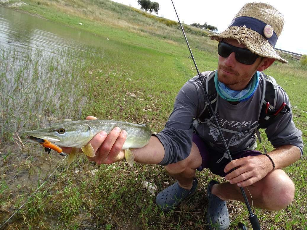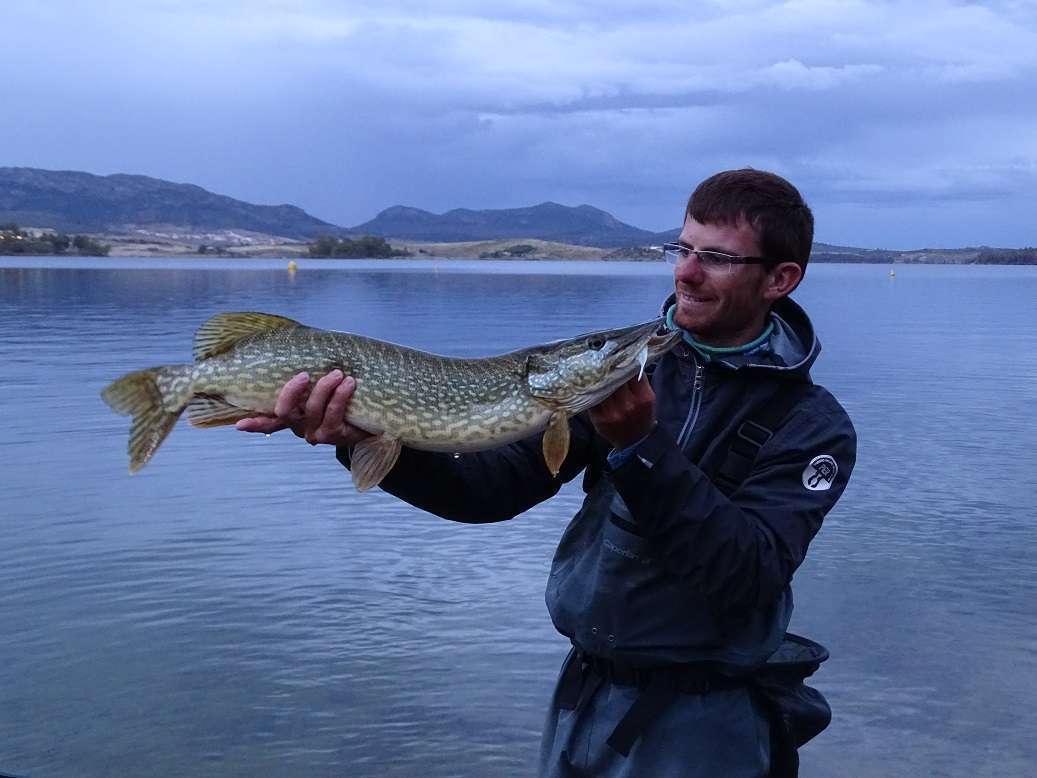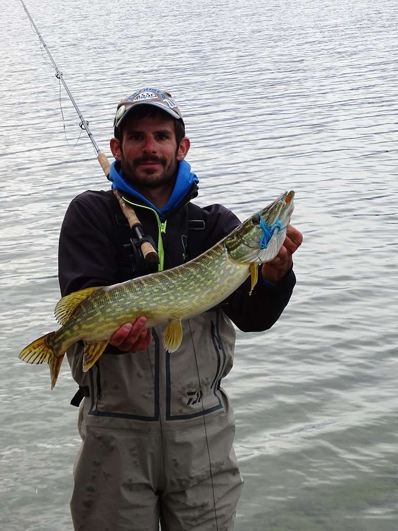 Pour ne pas changer, c’est sous une forte pluie que nous arrivons… Mais on commence à avoir l’habitude donc ça ne nous empêche pas de vite décharger la voiture pour filer tenter les brochets d’Orellana. Le vent soufflera très fort tout l’après-midi avec de temps en temps de bonnes averses, une mise en bouche compliquée mais nous ferons quand même 6 brochets chacun. Je prends le 1er poisson du séjour au Swim fish mais ensuite ce sont les PN qui vont assurer la pêche.