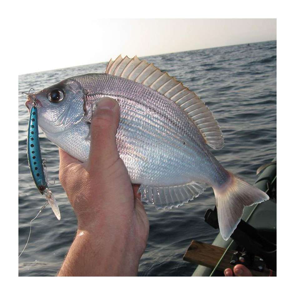 • Vibrations : Leurres trapus et lourds possédant des flancs étroits et un méplat sur la tête qui, en prenant appui sur l’eau les font vibrer latéralement de manière très intense. Ces leurres sont généralement lourds car fortement billés. Ils émettent ainsi beaucoup de sonorités (généralement basses fréquences) Fonctionne aussi bien en pêche profonde (dandine) qu’en lancer- ramené.