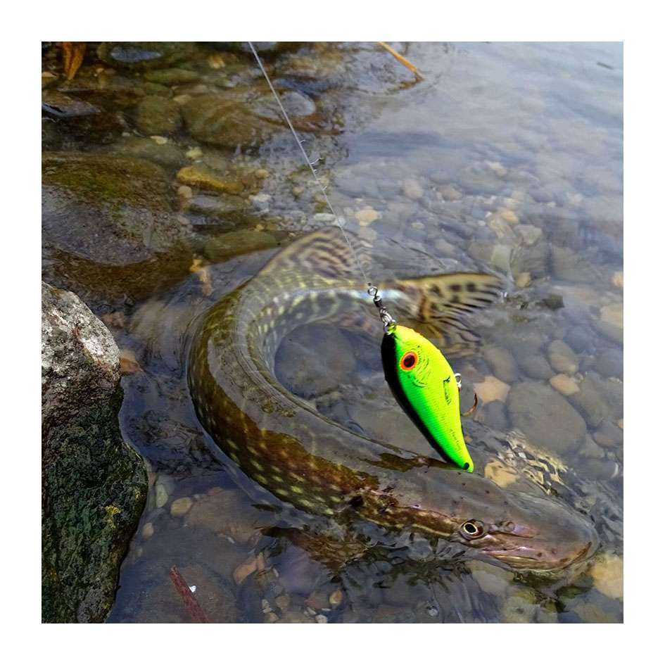 • Jerkbaits : Leurres ayant la capacité de se désaxer latéralement sous de fortes tirées (« jerks », d’où leur nom) Ces embardées sont larges et violentes, comme celles d’un poisson paniqué cherchant à fuir un carnassier par de brusques changements de direction.