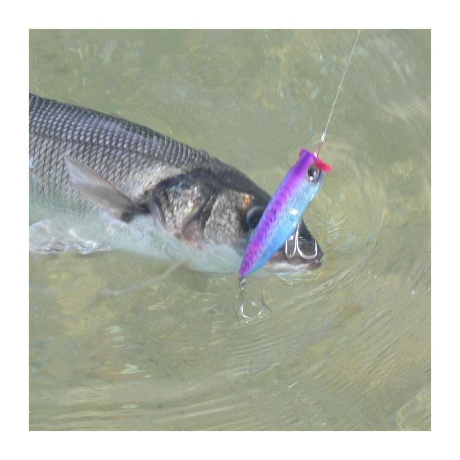 • Poppers : Poissons nageurs de surface possédant une face concave repoussant l’eau en émettant des «pops» sonores (d’où son nom) et en créant de fortes éclaboussures. Ces turbulences font croire aux prédateurs à la chasse d’autres carnassiers, entrainant ainsi un reflexe d’attaque par compétition alimentaire. Récupéré linéairement et rapidement, ils laissent un sillage de bulles attractives.
