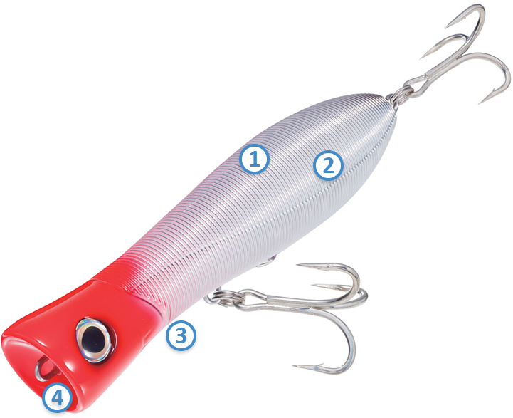 Ces technologies issues du bureau d’étude et développement Yo-Zuri apportent à ce popper de multiples avantages qui démultiplient son attractivité.