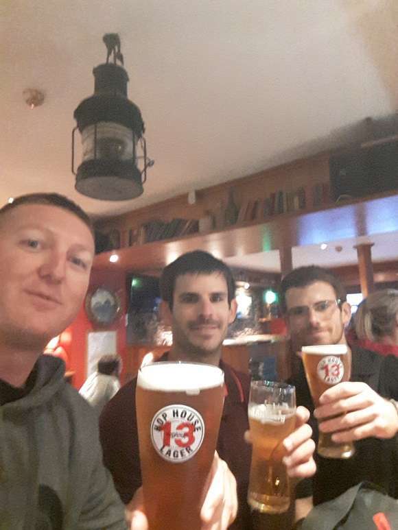 On rentre boire les premières Guinness (ou cidre pour moi…), fatigué d’avoir eu du vent dans la tronche toute la journée mais avec quand même 2 records à arroser !