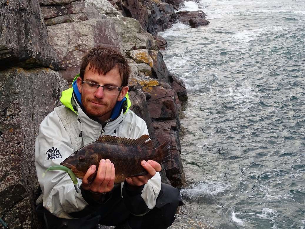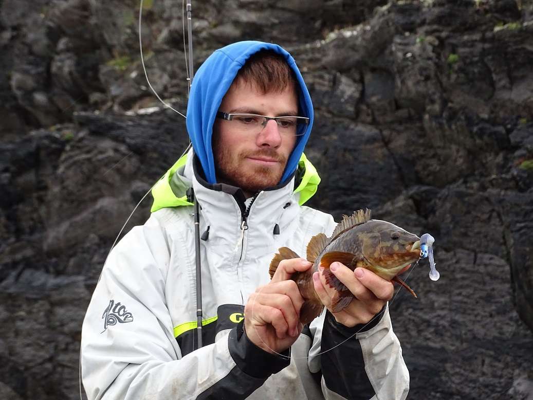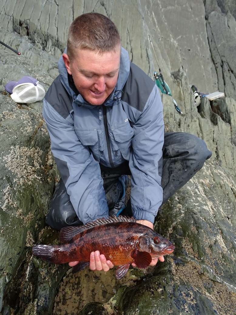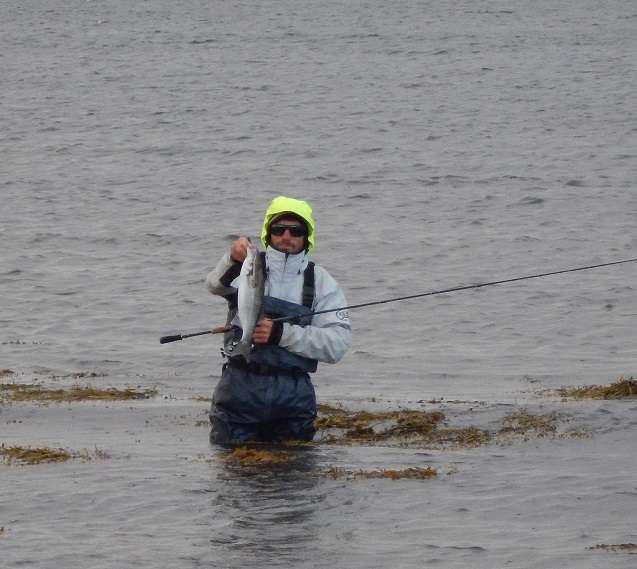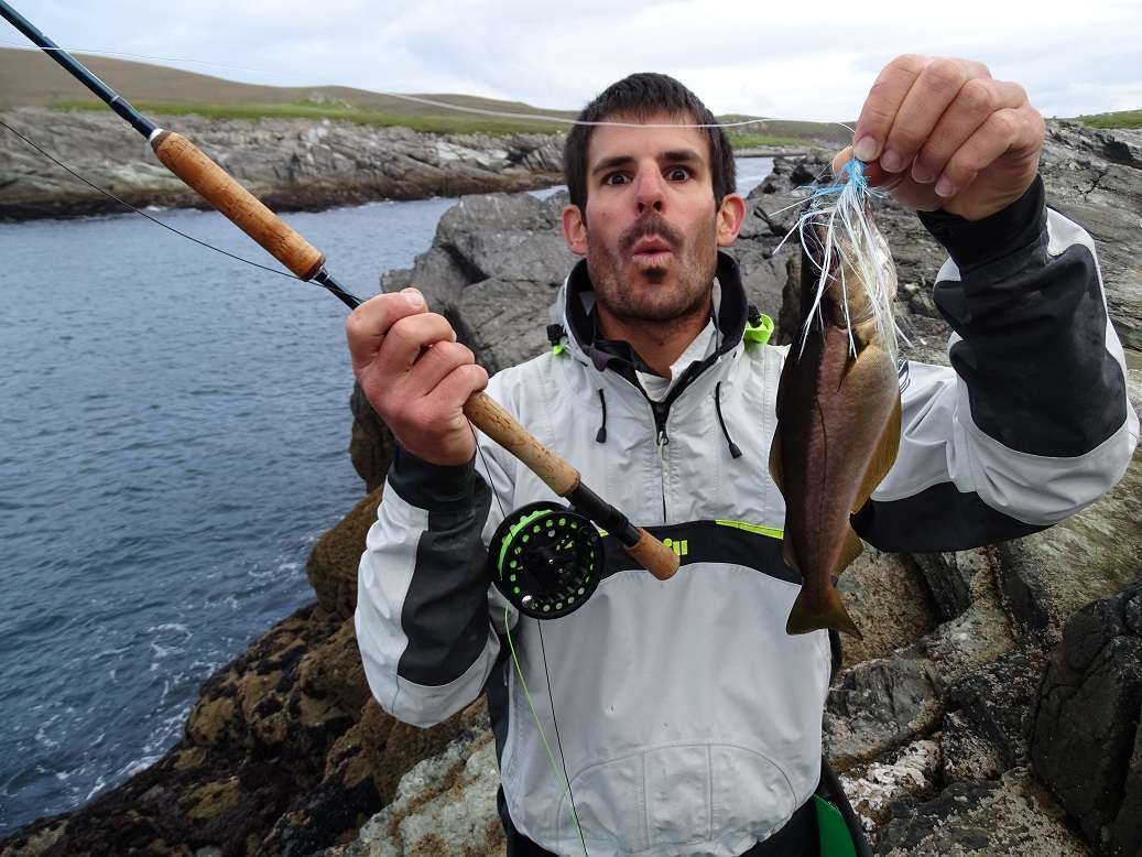 Moi j’apprends à mes dépends que ma canne à mouche est un peu molle pour arrêter le rush dans joli lieu dans les laminaires, du coup c’est un plus modeste qui pose pour la photo…
