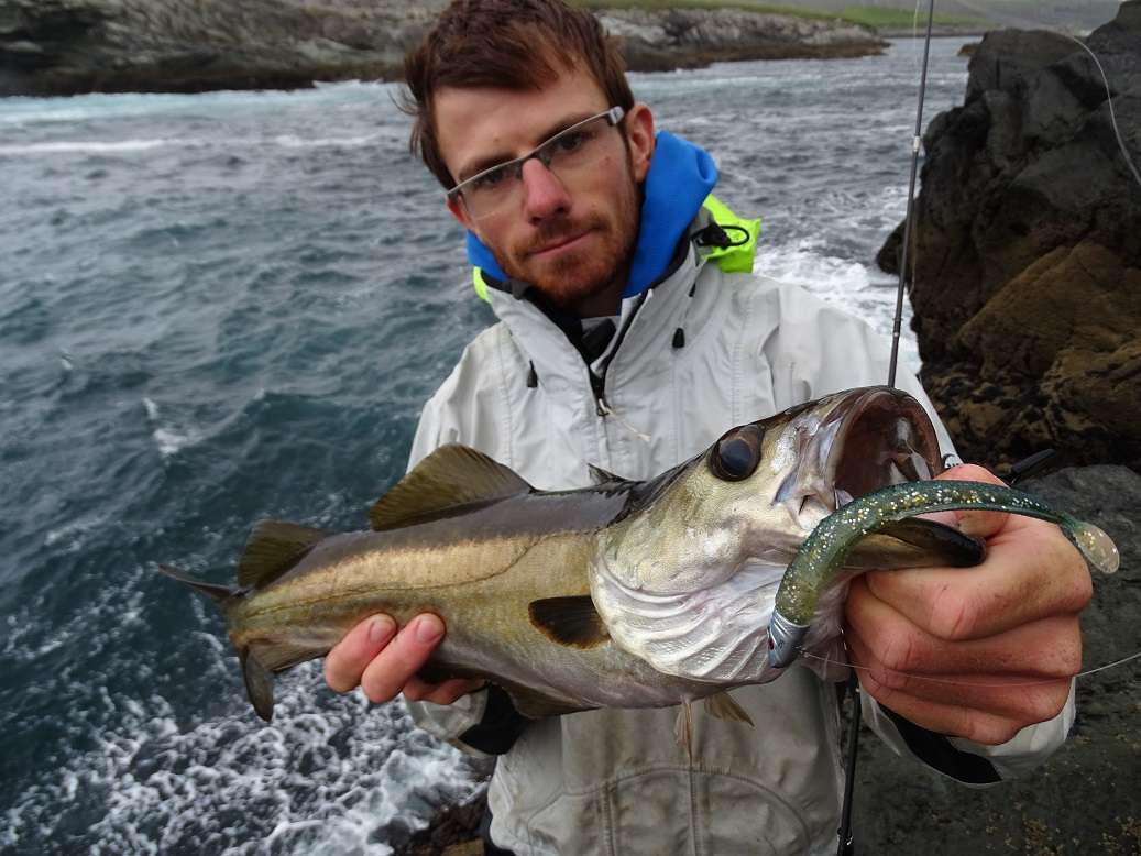 Dimanche, dans mon lit sous le toit j’entends les rafales siffler, comme annoncé le vent est déjà fort, il devrait monter en journée avec des rafales à +100km/h ! Mais l’année dernière on a connu ça et cette fois nous sommes armé de jig suffisamment lourd. On retourne sur un bon spot de l’an passé, on a l’impression que s’était hier que nous foulions ces prés au milieu des moutons. Colin monte une tp de Blue equille 10gr armée d’un Turbo shad et prend une vieille alors que je n’ai pas encore pu lancer !