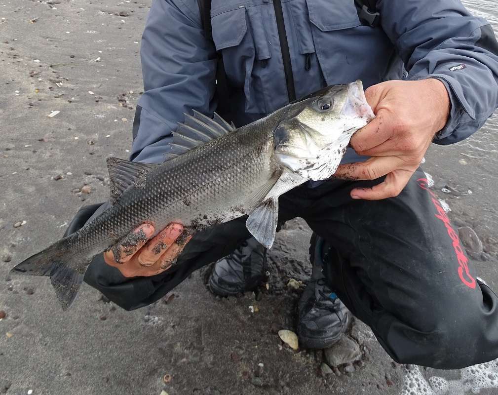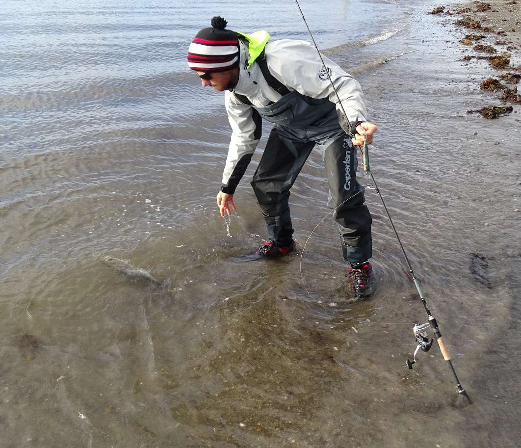 Mais Olivier insiste alors on remet les waders et c’est parti. On marchera pas mal pour voir si certains coins sont pêchable mais c’est vraiment agité et de tout façon le vent fait même surfer les jig de 40gr