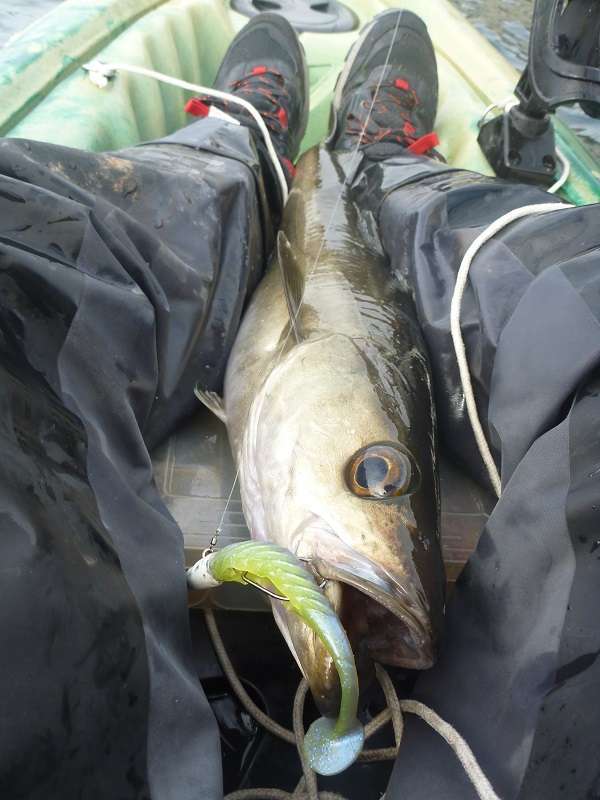 Cet aprem sera sous le signe des vieilles pour moi. D’abord 2 prises au moment ou le jig touche le fond, c’est à dire loin et profond, les combats seront musclés !