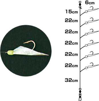 Bas de ligne réalisé avec de la véritable peau de poisson aux refelets arc-en-ciel. Hameçons dorés et perles epoxy phosphorescente pour encore plus d'attractivité.