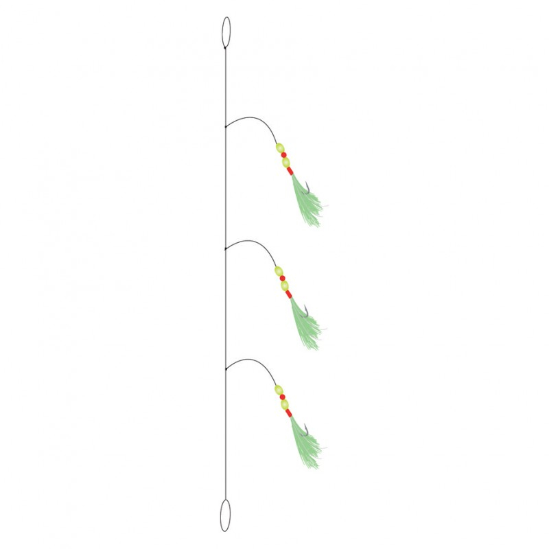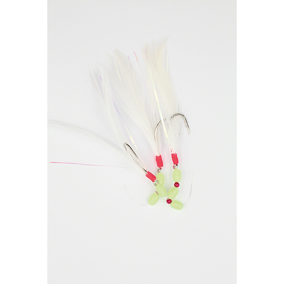 Bas de ligne composé de 3 hameçons avec 2 grosses perles phosphorescentes, pour la pêche des bars, bonites, lieus, ...