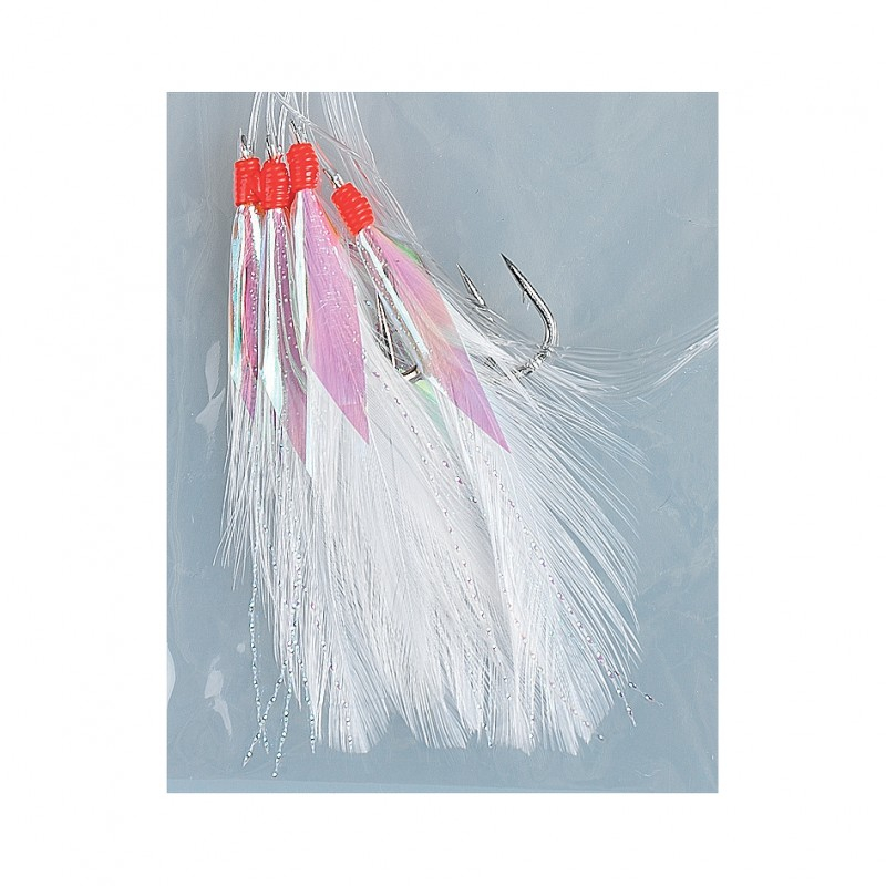 Bas de ligne avec plumes de mer véritables. Réalisé pour la pêche du bar , des maquereaux, chinchards, ...