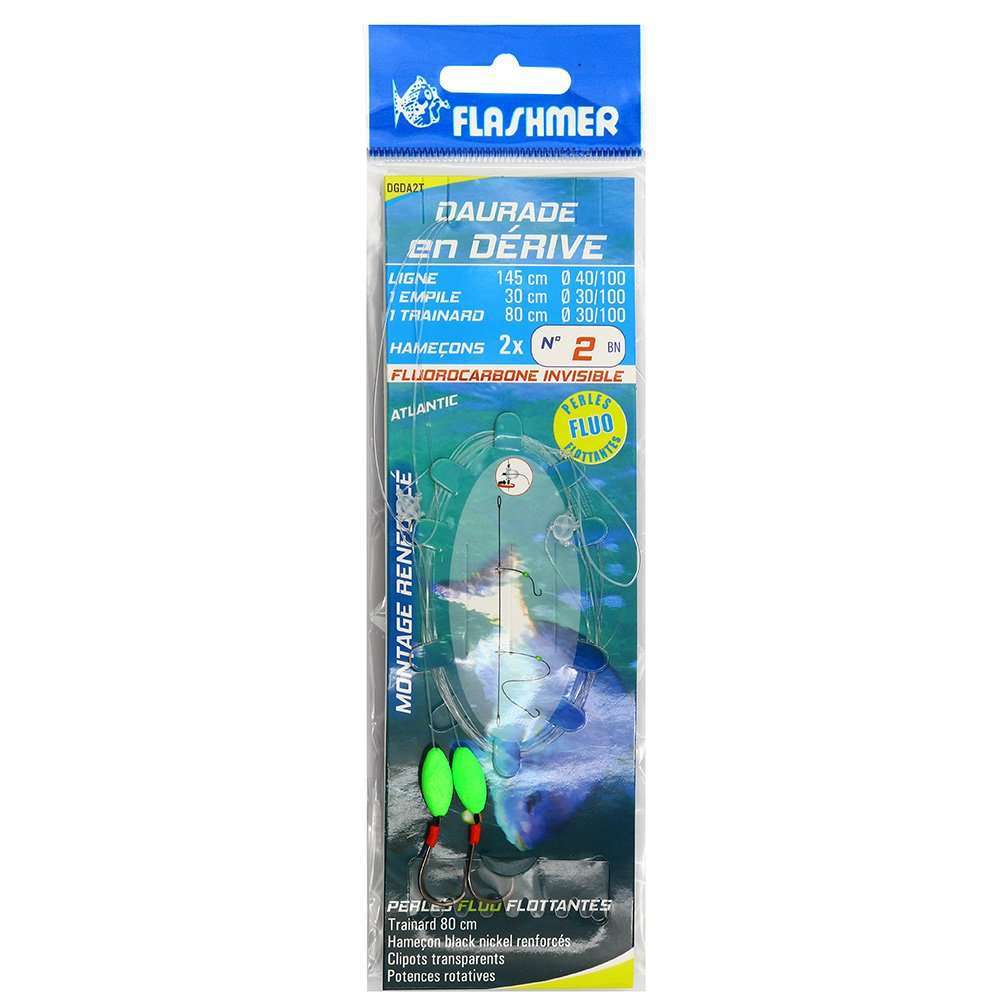 Montages pour les sparidés et poissons de roche. Longeur totale de la ligne 145 cm. 1 empiles de 30 cm en 40/100 sur perle clipot rotative et un trainard de 80 cm en 30/100 sur perle clipot rotative. Hameçons renforcés black nickel. Le gros atout des perles flottants est qu'lles décollent les hameçons du fond et évite qu'ils ne s'accrochent. Indispensable en dérive ! En outre elles offrent une présentation plus naturelle de l'appât. Important : Eschez les hameçons avec un appat (morceau de coquillage, ver, seiche, ..etc)