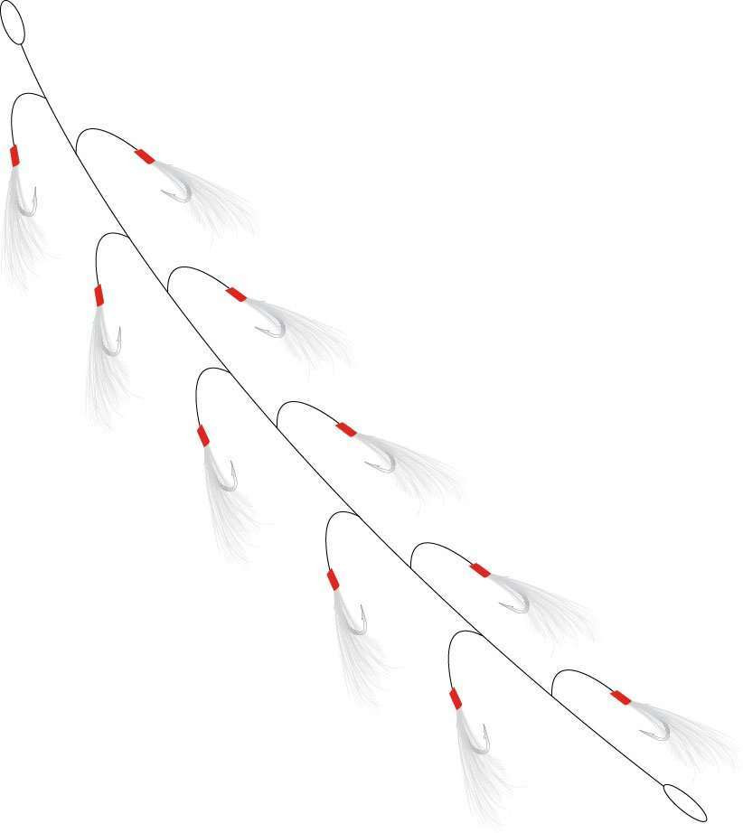 10 hameçons montés avec plumes blanches pour le maquereau