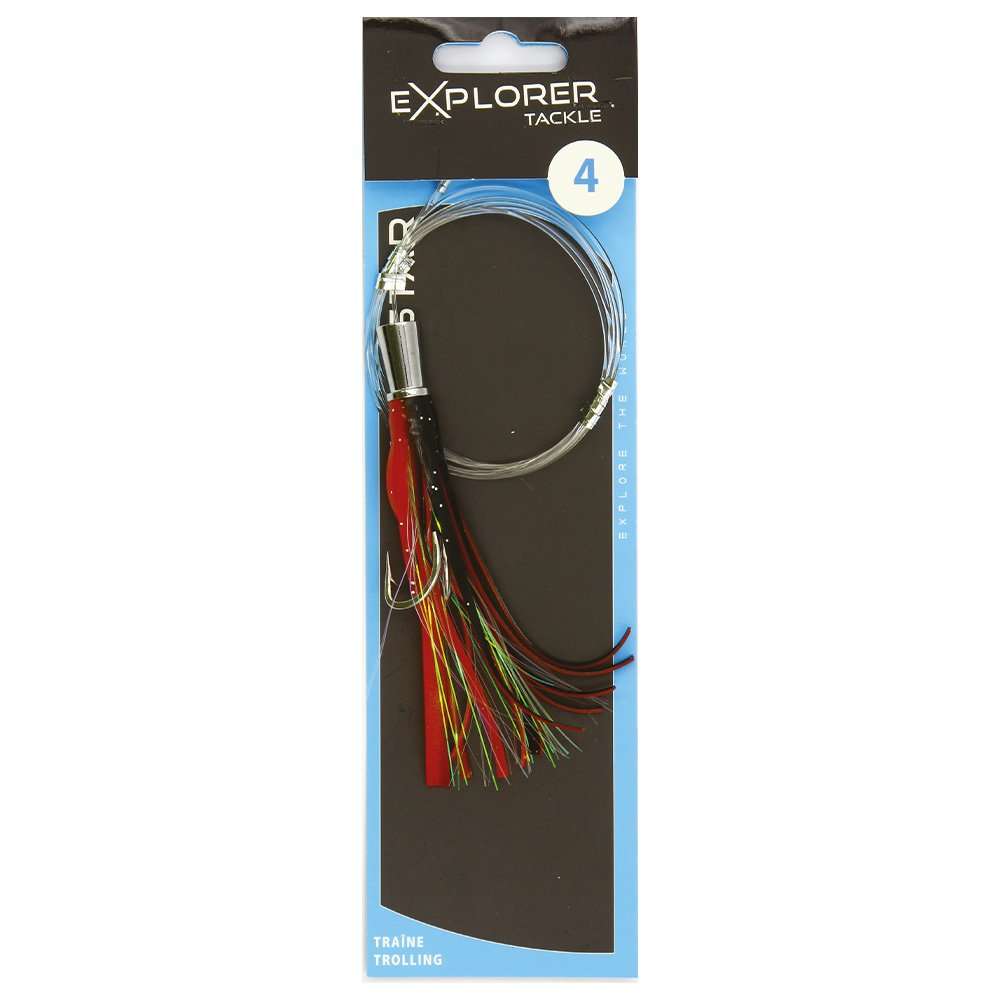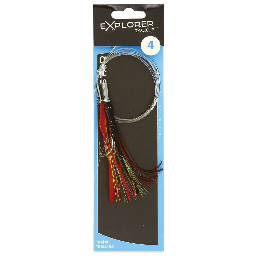 Les Tuna Star Explorer Tackle sont des leurres de traîne de type Big Game. Cette gamme ultra complète de jets est idéale pour la pêche des poissons trophées. Prêts à pêcher, ces jets sont prémontés avec un bas de ligne de 120 cm dont la boucle d’attache est sleevée et ils sont déjà armés d’un hameçon double fort de fer au piquant redoutable. Dotés d’une jupe haute densité de grande qualité, ces leurres sont conçus pour être utilisés seuls ou associés à un appât naturel (poisson entier ou filet).