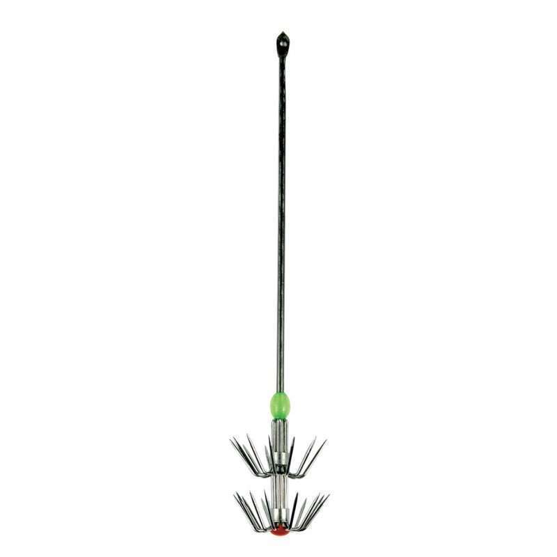 Turlutte en INOXà escher : elle  destinée à recevoir un poisson (sardine, lançon, trogue) ou un appât (morceau de calamar, poisson, viande)